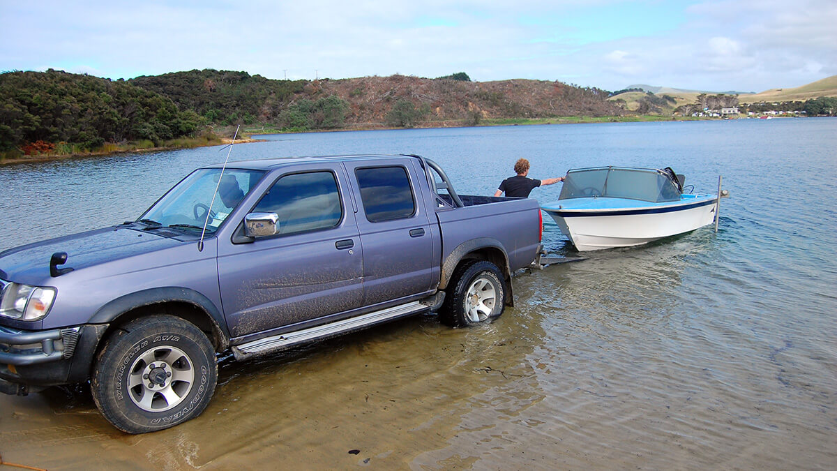 - Bring the boat as far up onto the beach as possible so there's no need to put the car into the water